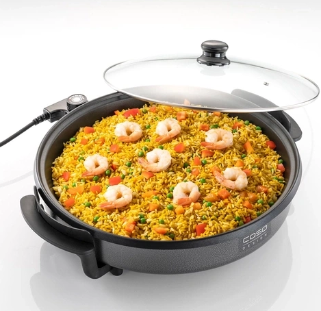 Profesionalna električna party ponev bo hitro postala nepogrešljiv pomočnik za vsako priložnost – naj bo to kampiranje, uporaba v počitniški hiši ali kot dopolnitev vaše domače kuhinje. S težo le 1,6 kg je enostavna za prenašanje, zaradi kompaktne zasnove pa je hitro pripravljena za uporabo. Potrebujete le električno vtičnico – in kulinarični užitek se lahko začne.