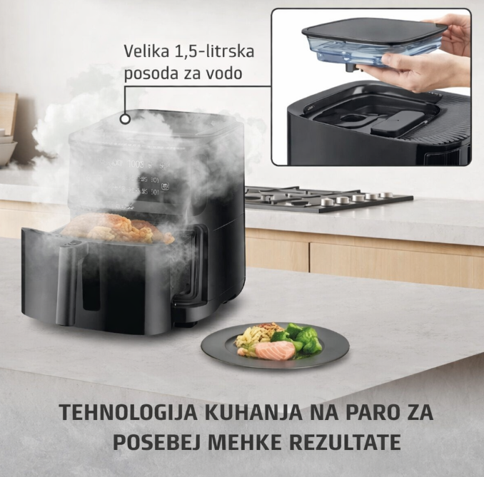 3 v 1: cvrtnica na vroč zrak s funkcijami vroč zrak, parno kuhanje in vroč zrak + para – vse v eni napravi