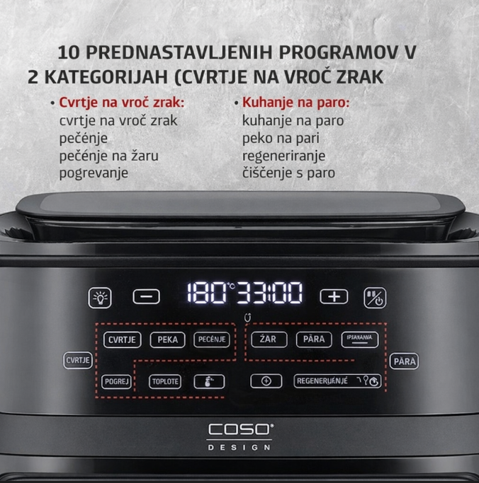 CASO Design AirFry & Steam 700 – poudarki