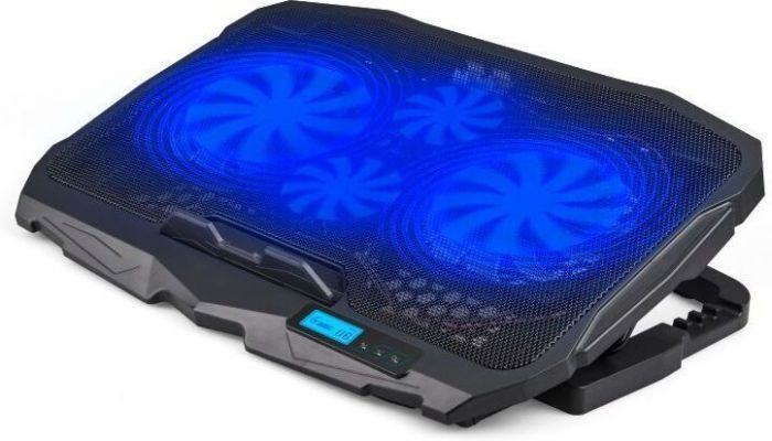 Univerzalna hladilna podloga za prenosnike do 17'' z 4 ventilatorji, LCD zaslonom in protizdrsnim dizajnom. Podaljšajte življenjsko dobo vašega prenosnika!