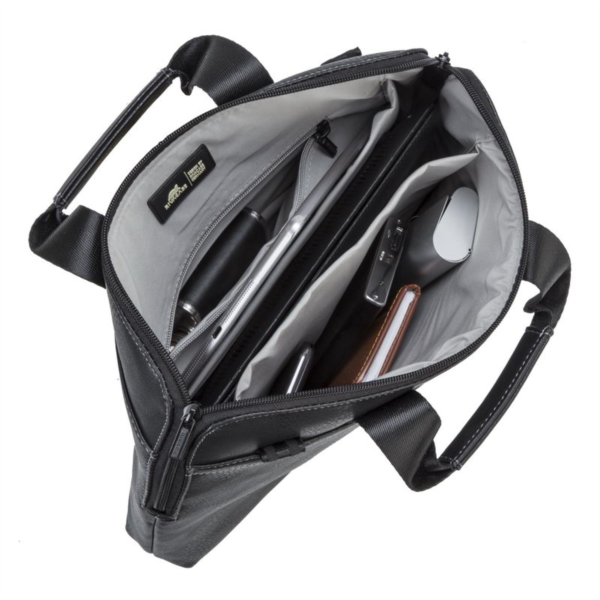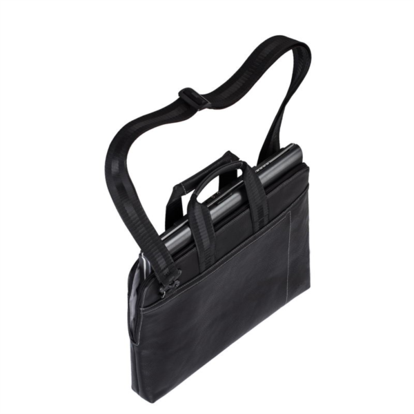 RivaCase 8920 je izjemno vitka in kompaktna črna torba za prenosnik do 13,3 palcev, idealna za Macbook Pro in Air. Izdelana iz robustnega PU usnja, ponuja odebeljene stranice za zaščito ter poseben predelek za dokumente in tablico do 10,1 palcev.