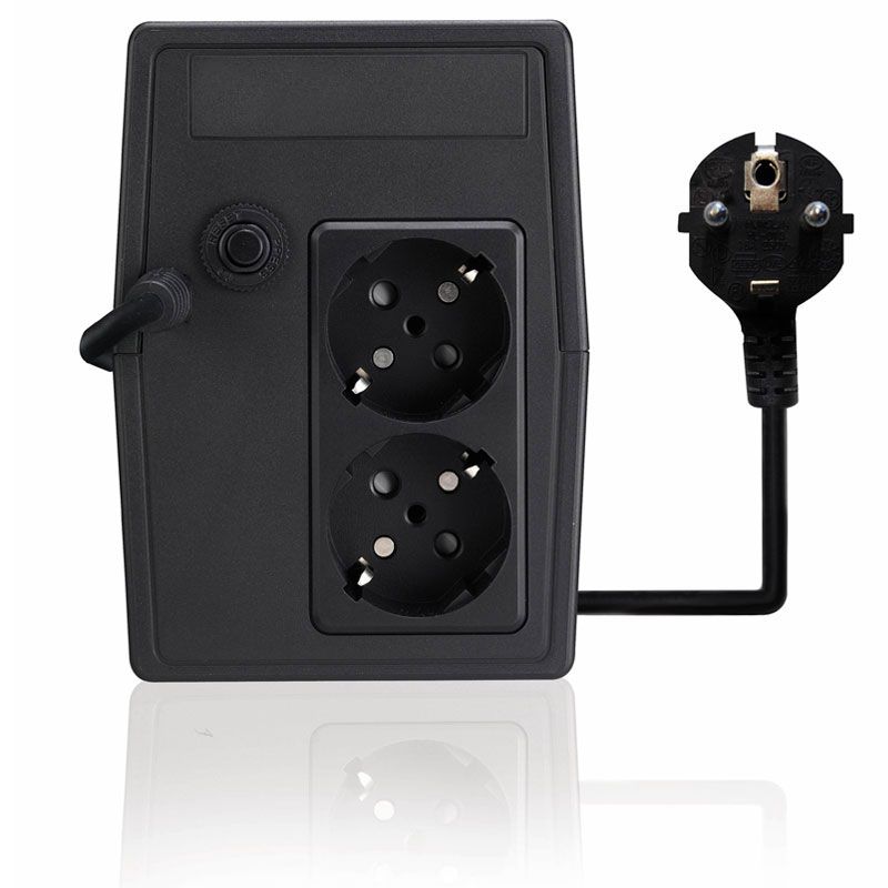 Tecnoware UPS ERA PLUS 800VA, 12V 7Ah baterija, ima 1 "šuko" vhodni fiksni kabel in 2 izhoda "šuko" zaščitena pred izpadi, prenapetostmi in podnapetostmi.